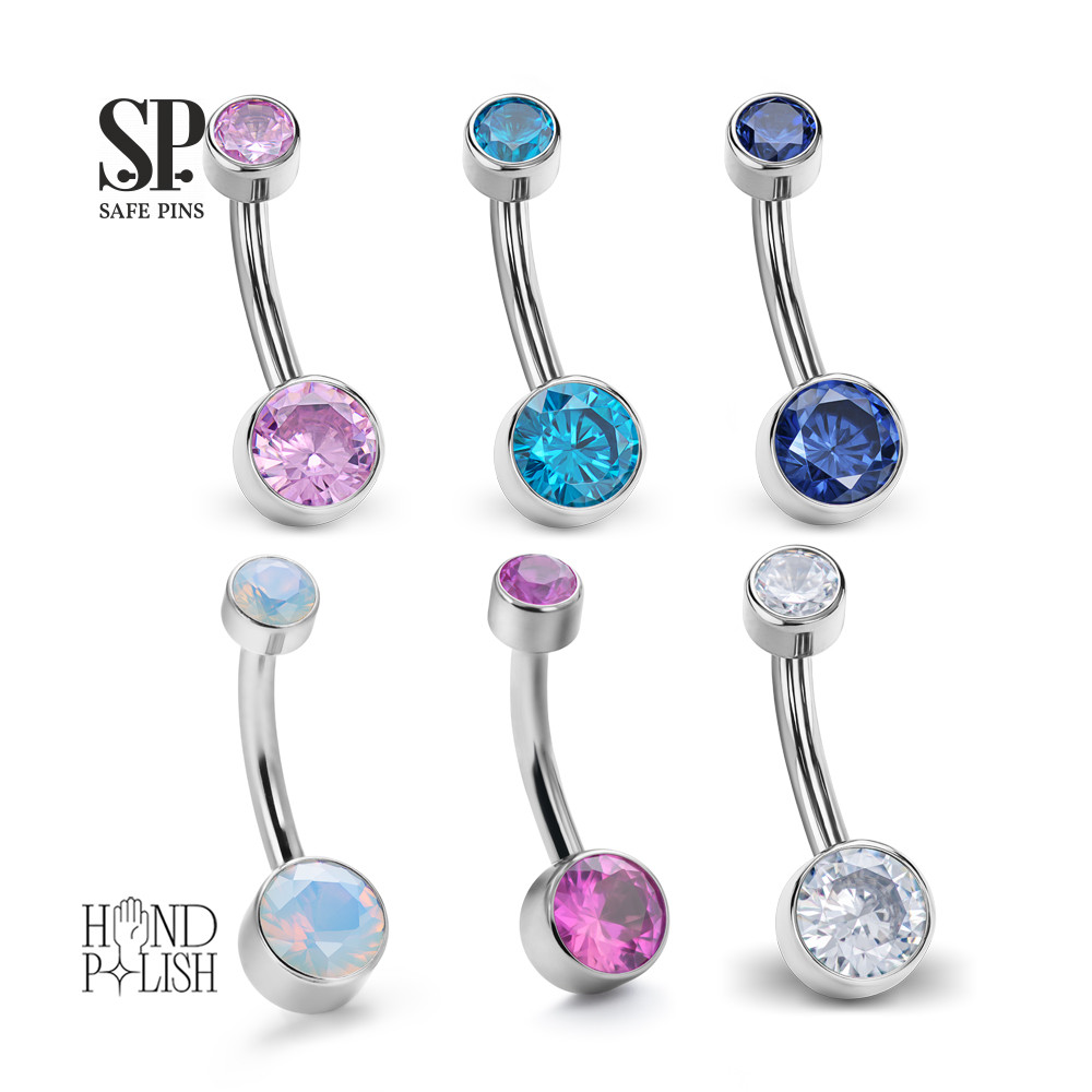 Internal double banana with Crystal CZ disc 4/6 mm